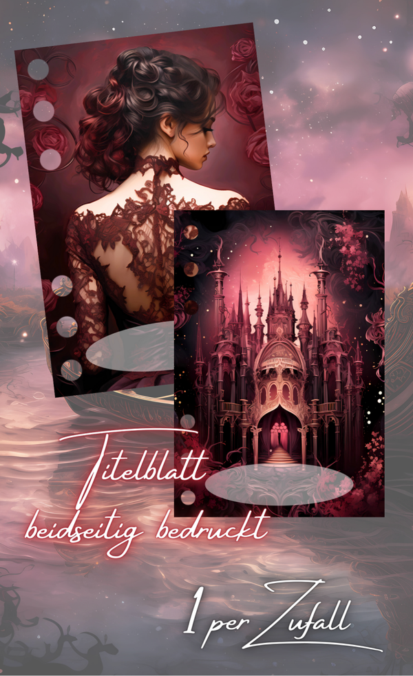1 x zufälliges Deckblatt ( Frau/Schloss) beschriftbar & gelocht